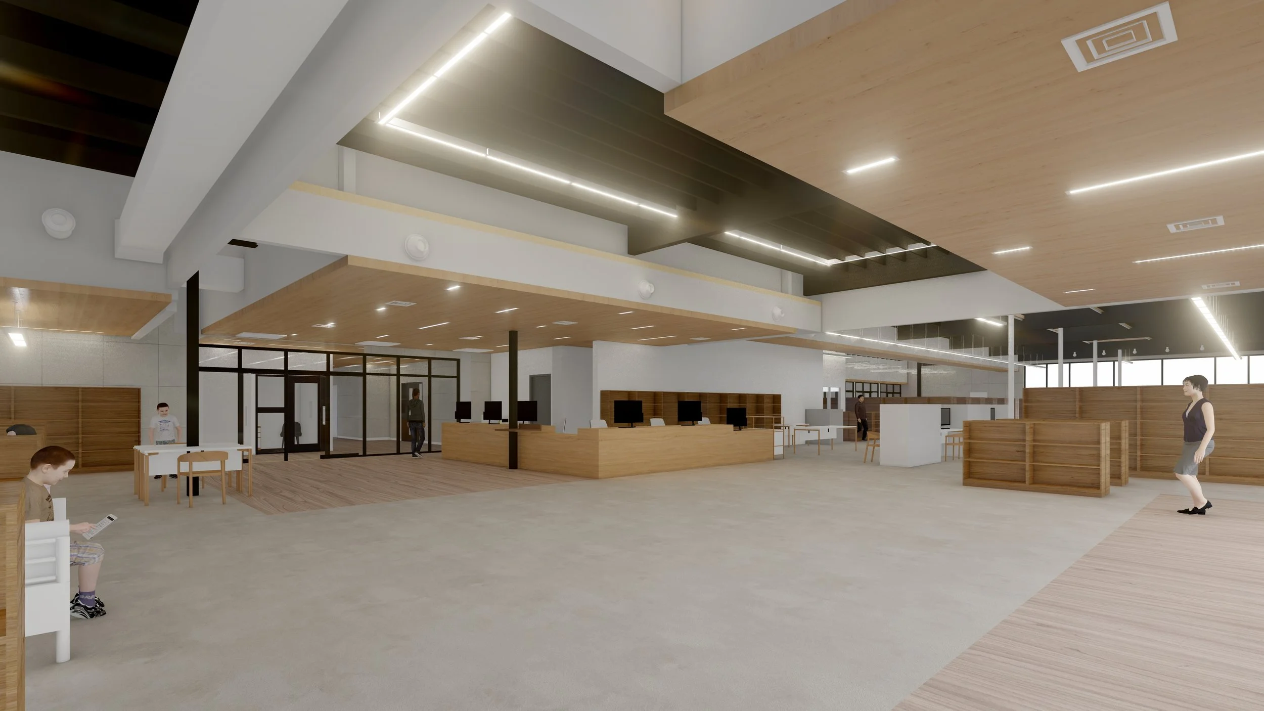 This adaptive reuse not only dedicates the space to the growth and education of the younger generation but also allows the building itself to become a tool for learning. Through the simplicity of the design, we let the architecture speak for itself. We’ve prioritized efficiency in various aspects of the project. A newly added skylight brings daylight and a view of the sky into the heart of the building, enhancing the atmosphere and supporting psychological well-being. The circulation throughout the space is smooth and intuitive, guiding visitors naturally through the center. Innovation is at the core of this teen center, with flexible multi-use spaces and integrated technology that adapt to the evolving needs and interests of the youth. The facility will include cooking classrooms, a makerspace, a computer lab, and study rooms providing teens with a diverse range of spaces to learn, create, and grow.
